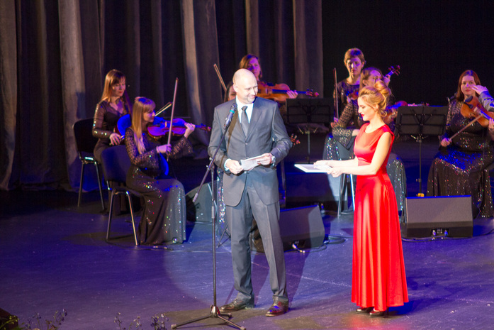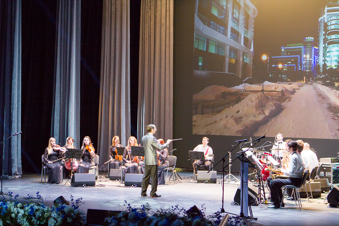 Музыкальные паузы создавал Екатеринбургский государственный эстрадно-симфонический оркестр под управлением Ильи Коптева - звучали мелодии из кинофильмов. На экране в это время транслировались видеоролики с видами Екатеринбурга.