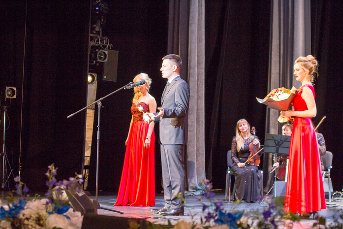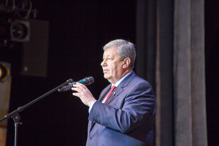 Многотысячный коллектив благодарил победитель в номинации «Промышленник года» (главу Корпорации ВСМПО-Ависма Михаила Воеводина, уехавшего в срочную командировку, подменил на сцене его заместитель Артем Кисличенко).