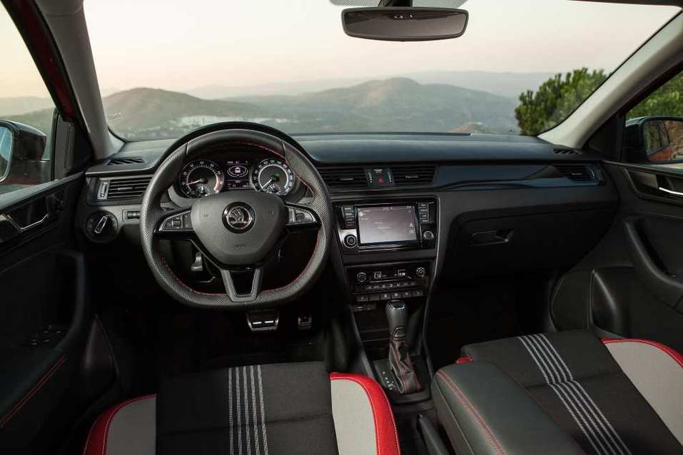 Мелких изменений в интерьере множество. Основное — более современная мультимедийная система. Кроме того, у Skoda Rapid появилась «тревожная кнопка» системы ЭРА-ГЛОНАСС