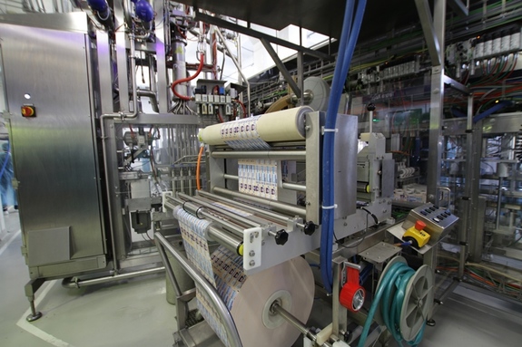 Фасовочный автомат разливает биокефир