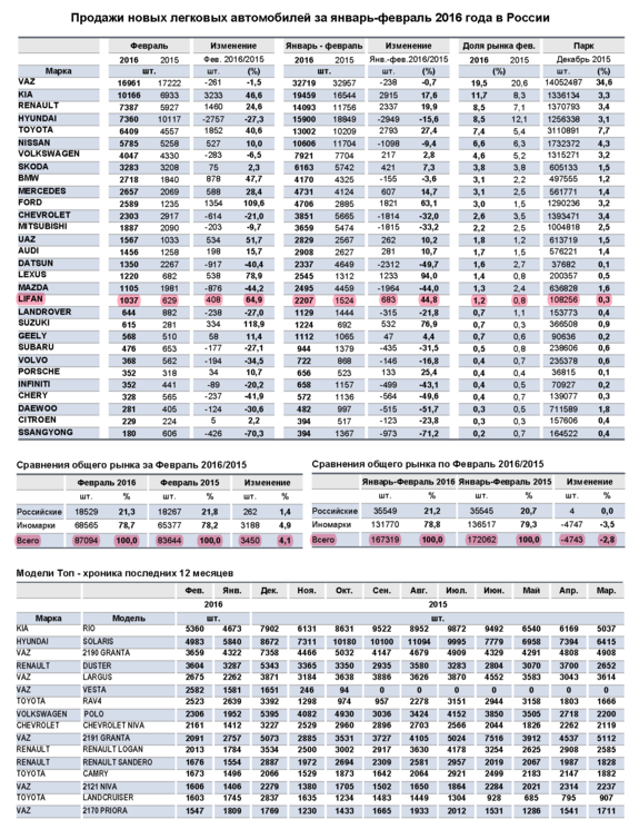 В марте 2016 года в России было продано 1353 автомобиля марки Lifan, сообщает «Автостат Инфо» со ссылкой на данные Ассоциации европейского бизнеса. Рост этого показателя к марту 2015 года составил 63%.