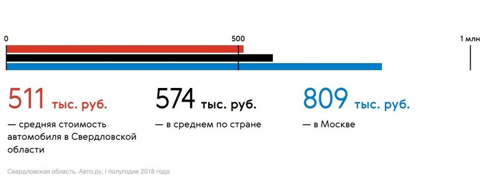 Портал Авто.ру проанализировал рынок подержанных автомобилей Свердловской области по результатам первого полугодия 2018 г. Выяснилось, что средняя цена продаваемой машины составила 511 тыс. руб. и выросла на 1% по сравнению с 2017 г. Это почти на 11% меньше текущей средней цены по стране (574 тыс. руб.).