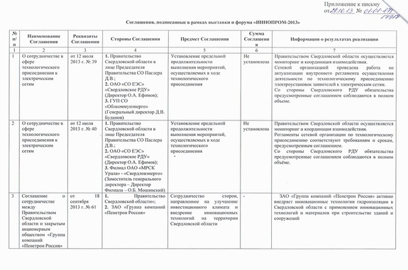 Отвечая на запрос Андрея Альшевских, областной вице-премьер Алексей Орлов представил перечень из 13 сделок с участием регионального правительства, которые были заключены на Иннопроме-2013.