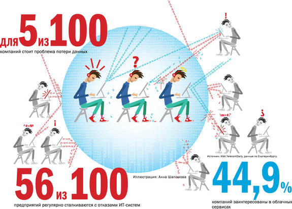 «В сентябре этого года мы провели исследование спроса на облачные услуги среди российских компаний малого и среднего бизнеса, а также влияния новых ИТ-инструментов на эффективность бизнеса. Выявили спрос на облачные сервисы: в Екатеринбурге почти половина опрошенных компаний (44,9%) заинтересована в подобных услугах. Причем 14% из них планируют использовать их в ближайшее время, а 12,1% — в ближайший год. Прежде всего эти показатели объясняются тем, что компании испытывают серьезные трудности с ИТ: 56% регулярно сталкиваются с отказами ИТ-систем, в том числе из-за разрозненности ИТ-инфраструктуры и недостатка квалифицированных специалистов, а 21,5% — с потерей данных. Наибольшим спросом среди платных офисных сервисов пользуются сервисы хостеров на основе решений Microsoft, Microsoft Office 365 и Google Apps для бизнеса».