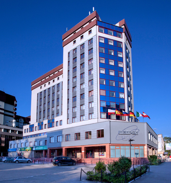 Холдинг «Микрон» построил свой объект в 2003 г. на месте свалки высотой в два человеческих роста. Здание было сразу четко спозиционировано: арендаторами станут иностранные компании, работающие в сфере научных разработок. Глава холдинга Борис Зырянов лично контролировал проектирование, строительство и проводил приемку всех систем здания — доверить управление проектом тогда было некому. В итоге офисник стал первым зданием в запроектированном позже и строящемся в настоящее время центре деловой активности города «Екатеринбург-Сити».