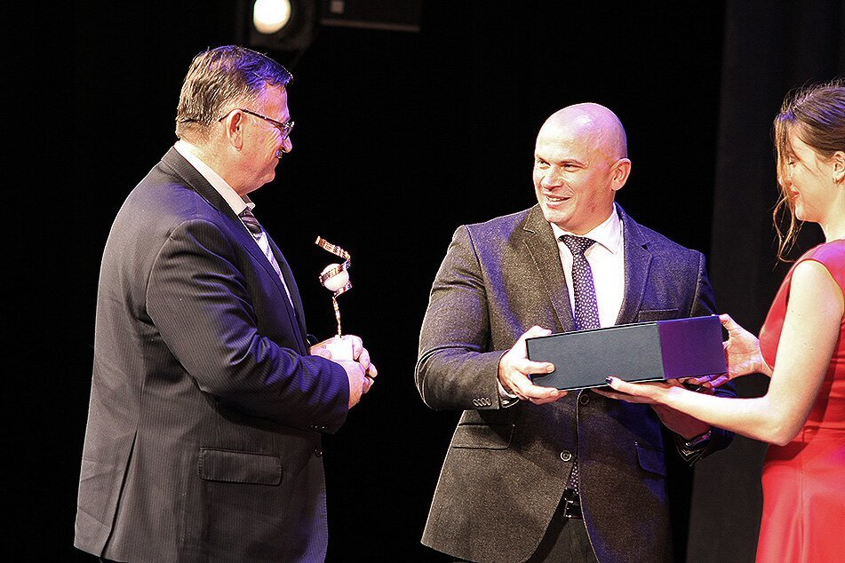 Им стал Александр Оглоблин, президент ГК «Елисей», на что зал отреагировал аплодисментами. Предприниматель извинился перед публикой, что не совсем подготовлен и в принципе, по его ощущениям, есть более достойные претенденты на победу.