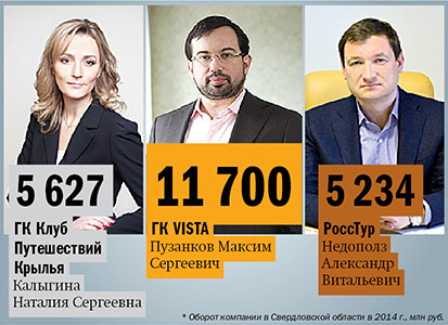 Наиболее динамичными среди участников ТОП-листа по итогам 2014 г. стали компании: филиал сетевого туроператора «РоссТур» в Екатеринбурге — оборот от продажи туристических услуг в сравнении с 2013 г. вырос на 102% и сетевой турагент ГК VISTA — прирост оборота компании к 2013 г. составил 52%. Отдельно стоит отметить местных турагентов «Море Трэвел» и «Зима-Лето» — компаниям удалось отправить в туры по внутренним направлениям на 81% и 79% соответственно больше туристов в сравнении с 2013г. Среди сетевых турагентов высокий прирост количества туристов на внутренних направлениях показала туркомпания «География» — 72% в сравнении с 2013 г.